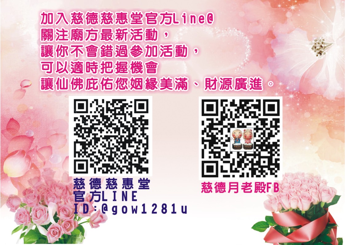 一個提供未婚男女一個絕佳求取婚緣、配對的場所。『慈德姻緣堂』為眾善信解惑,並供祈求婚緣早成,早日得子。 台灣諺語云:「姻綠天註定,不是媒人腳賢行。」即指男女婚姻結合皆由天註定,非媒人可勉強撮合。而所謂天註定,就是指「月下老人」的『姻緣一線牽』。